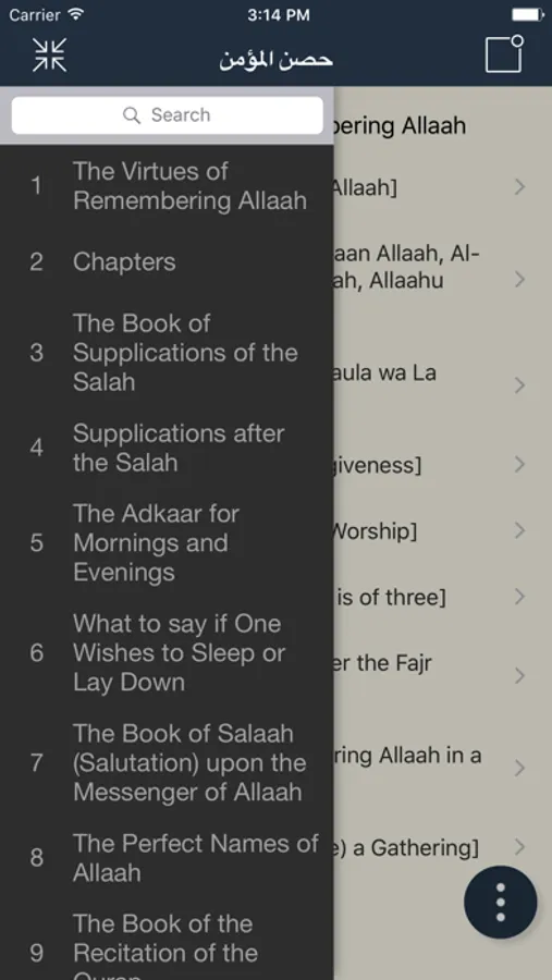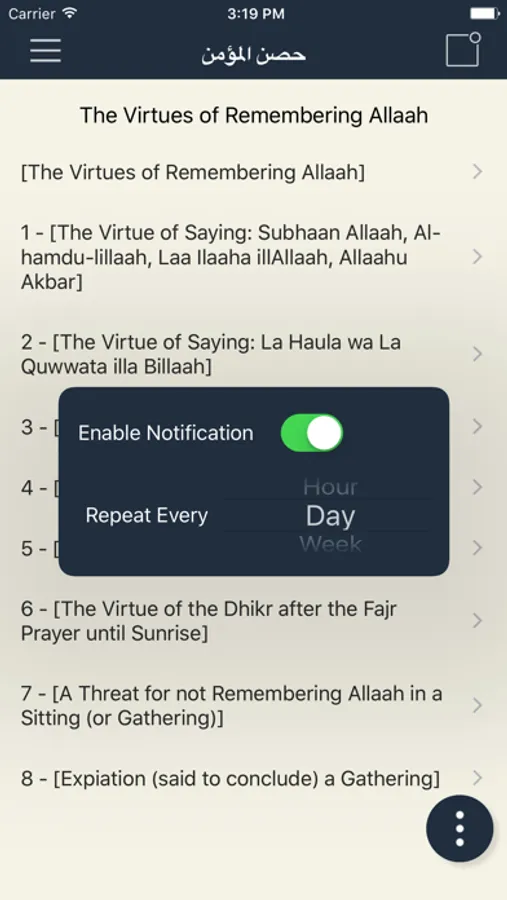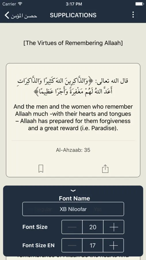 3. Option to add to favourites (Individual du'a and chapter)