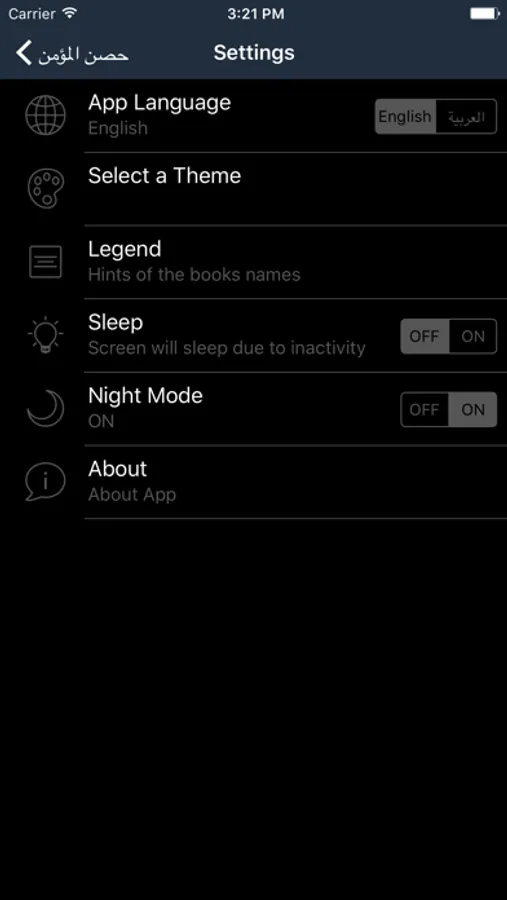 5. Option to change the language of the App (English / Arabic)
