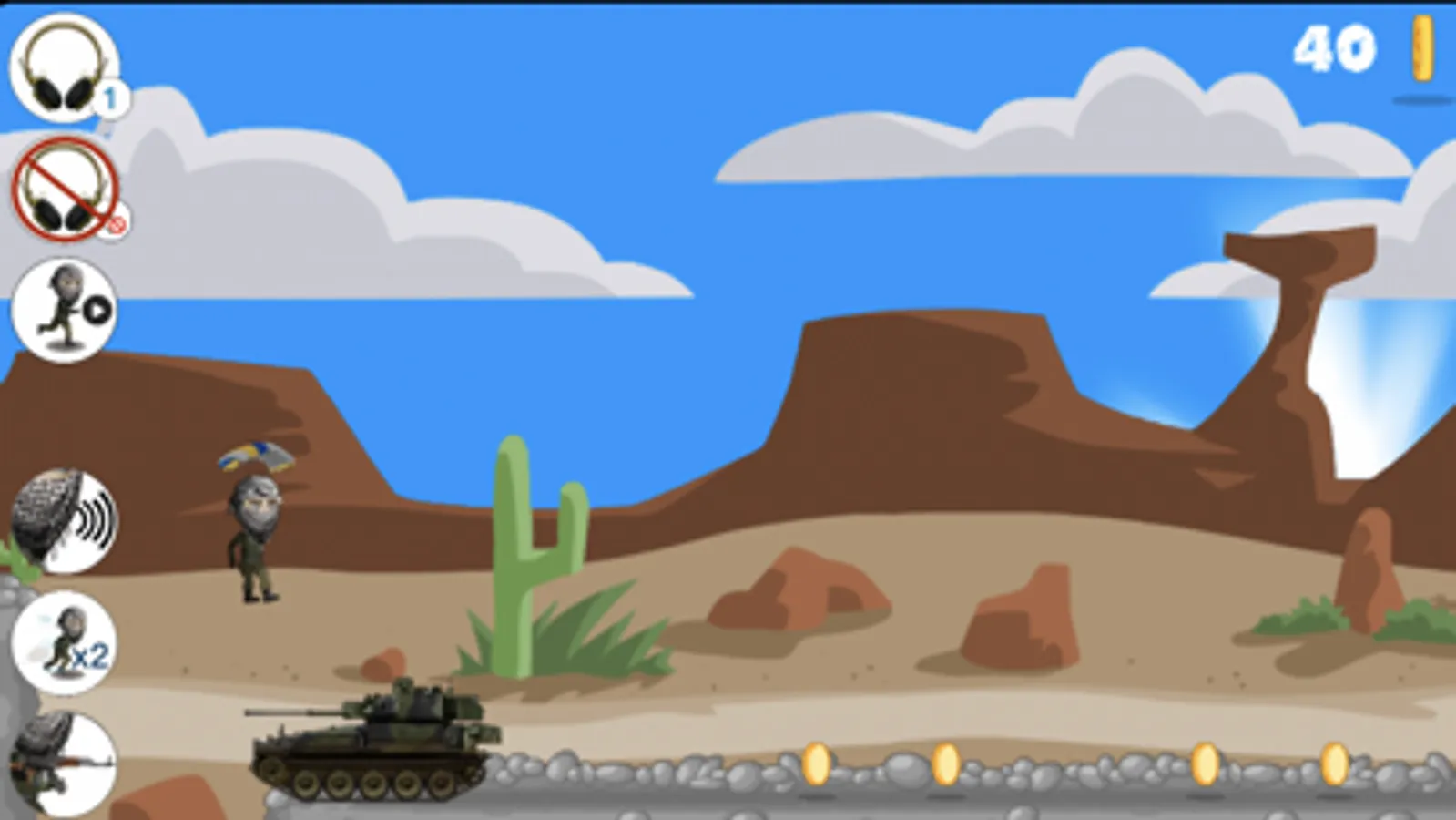 Ahtzem is a game of adventures soldier has many skills, including long jump and landing parachute challenge in this game is to overcome all obstacles by pressing the screen to jump soldier The biggest challenge is to get a large number of loans to achieve the highest grades