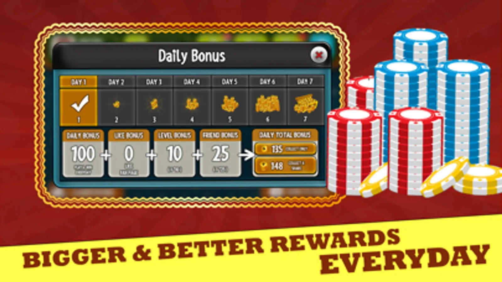 -Come back everyday and get Free Coins as Daily Bonus.