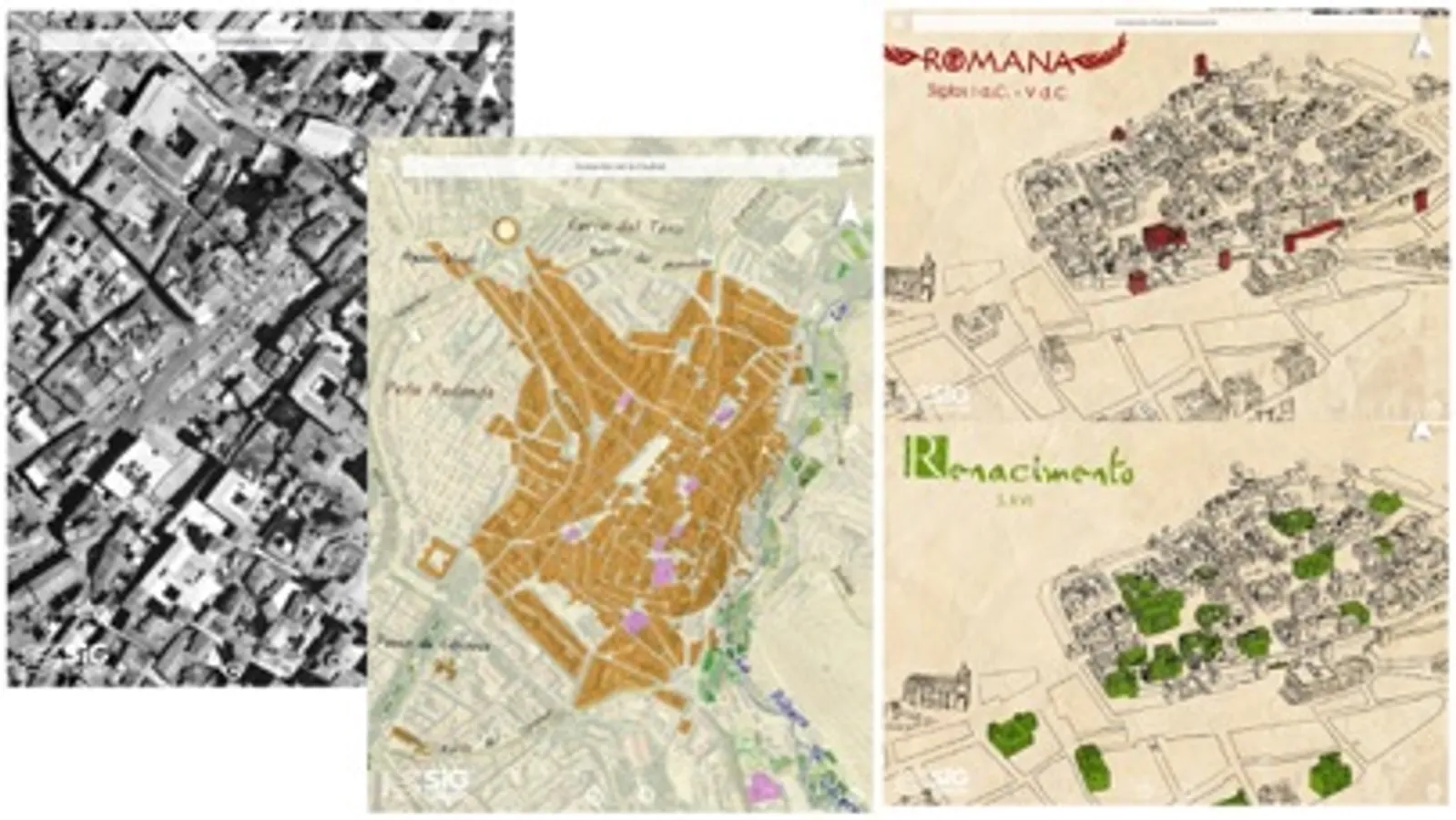 El nuevo escenario 3D de Cáceres permite navegar sobre el Modelo Digital del Terreno (MDT) del término municipal de Cáceres, sobre el que se pueden cargar diferentes Mapas Base ( ortofoto de 1956, Plan General Municipal, Mapa de Pendientes, Catastro, etc).