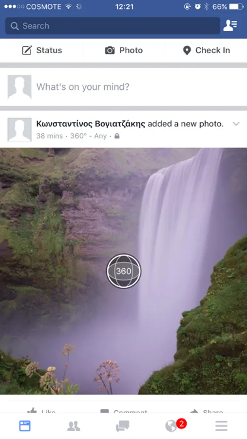 Convert any photo into 360° spherical. Pick a photo from your photo album and post it to Facebook.