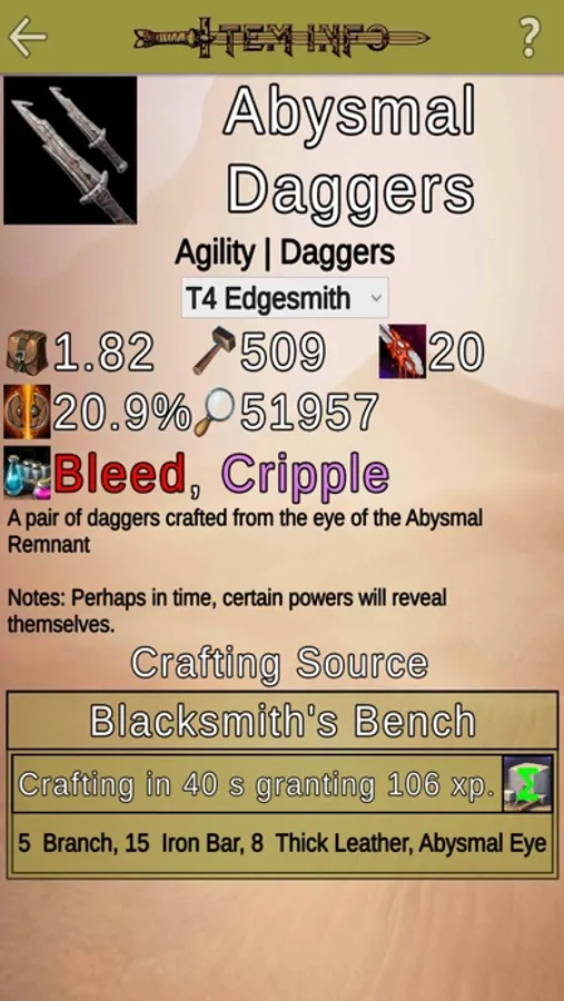 - View info & stats for Weapons, Shields, Tools, Armors, Buildings, Food and more.