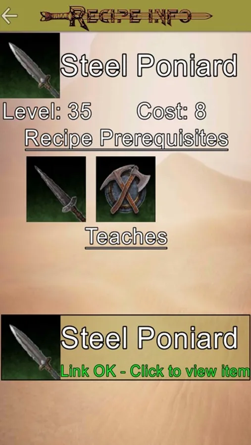 - Recipes information, items taught by recipes linked for quickly viewing information about said items.