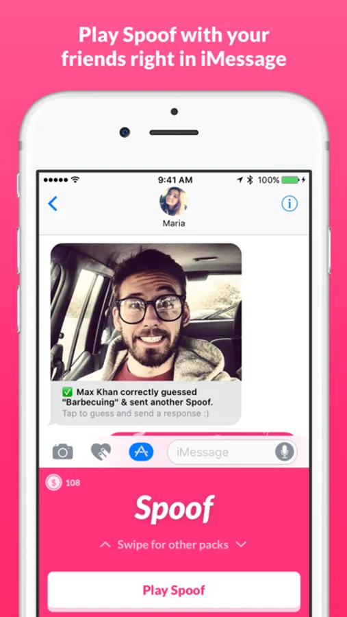 Play charades right in iMessage with Spoof. Record yourself acting out hilarious topics & laugh along with friends while guessing each other’s Spoofs.