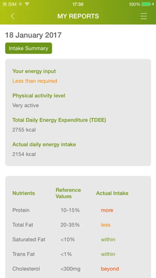 這個應用程式協助你維持健康飲食習慣。只要拍攝並上載您的食物照片到應用程式、用相片紀錄您的攝取量、選擇每天的運動量,您便可獲得當日總能量消耗和實際當日能量攝取量的資料。能量攝取報告和攝取量總結報告幫助您選擇食物。您還可以通過聊天室與我們的營養專家聊天。從現在開始你的健康生活吧!
