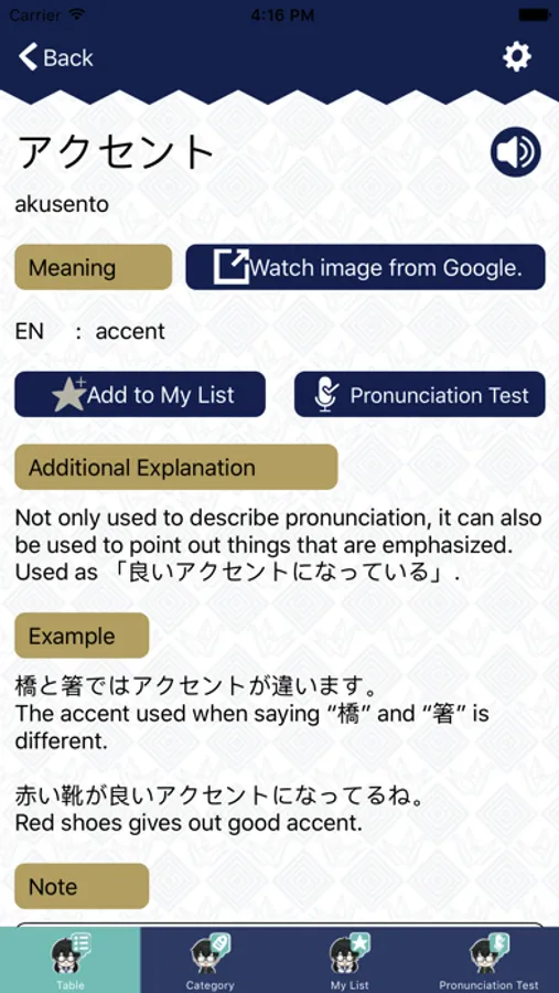 - Pronunciation audio can be chosen from the voice of a girl, or the voice of a boy. You can listen to the pronunciation from the voice of each cute character. Unlike mechanical voices, it is fun to listen to!