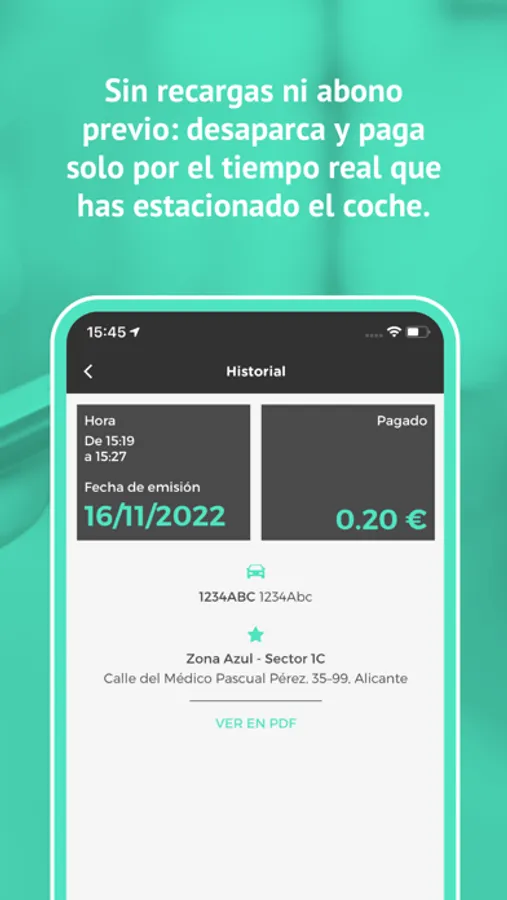 - Sin recargas ni abono previo: desaparca y paga solo por el tiempo real que has estacionado el coche.