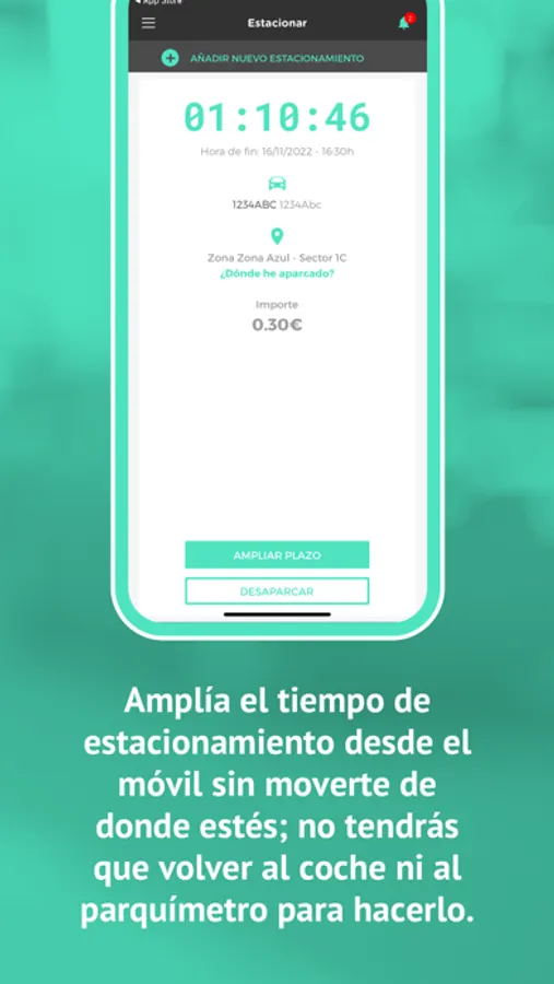 - Amplía el tiempo de estacionamiento desde el móvil sin moverte de donde estás; no tendrás que volver al coche ni al parquímetro para hacerlo.