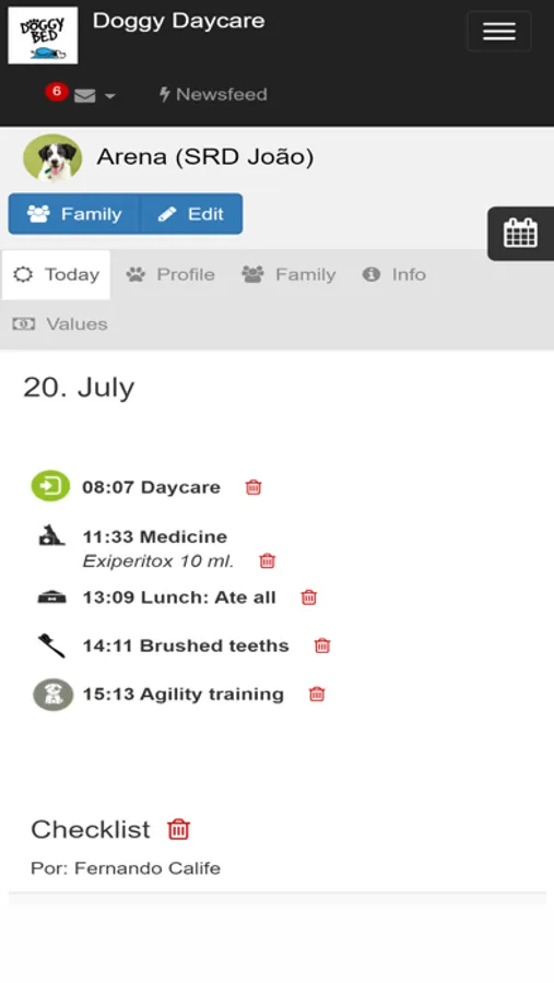 Acompanhe todas as atividades e serviços realizados pela nossa Lista de Presença ou mais detalhado, no perfil do cachorro.