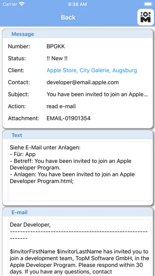 of TopM Software GmbH anytime and anywhere. Managers, executives, sales and service staff can stay informed about business transactions, view reports, manage contacts and carry out sales and service activities.