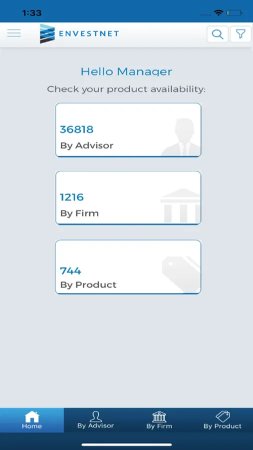 The Envestnet Product Availability application allows you to see where your firm's products are available at the click of a button. Choose to view your availability by Product, by Firm, and by Advisor.