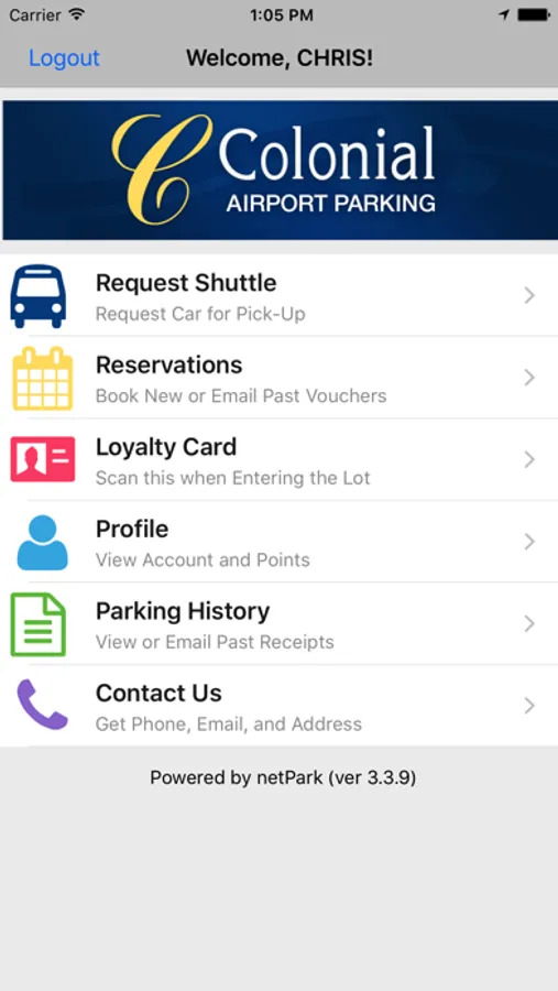 Customer portal for access to Colonial Airport Parking located at Philadelphia International Airport in Philadelphia, PA, providing:
