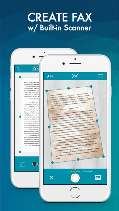 Easy Fax's built-in advanced scanning algorithm automatically detects borders of the page, corrects perspective, eliminate shadows and set a perfect contrast for text - black on white.