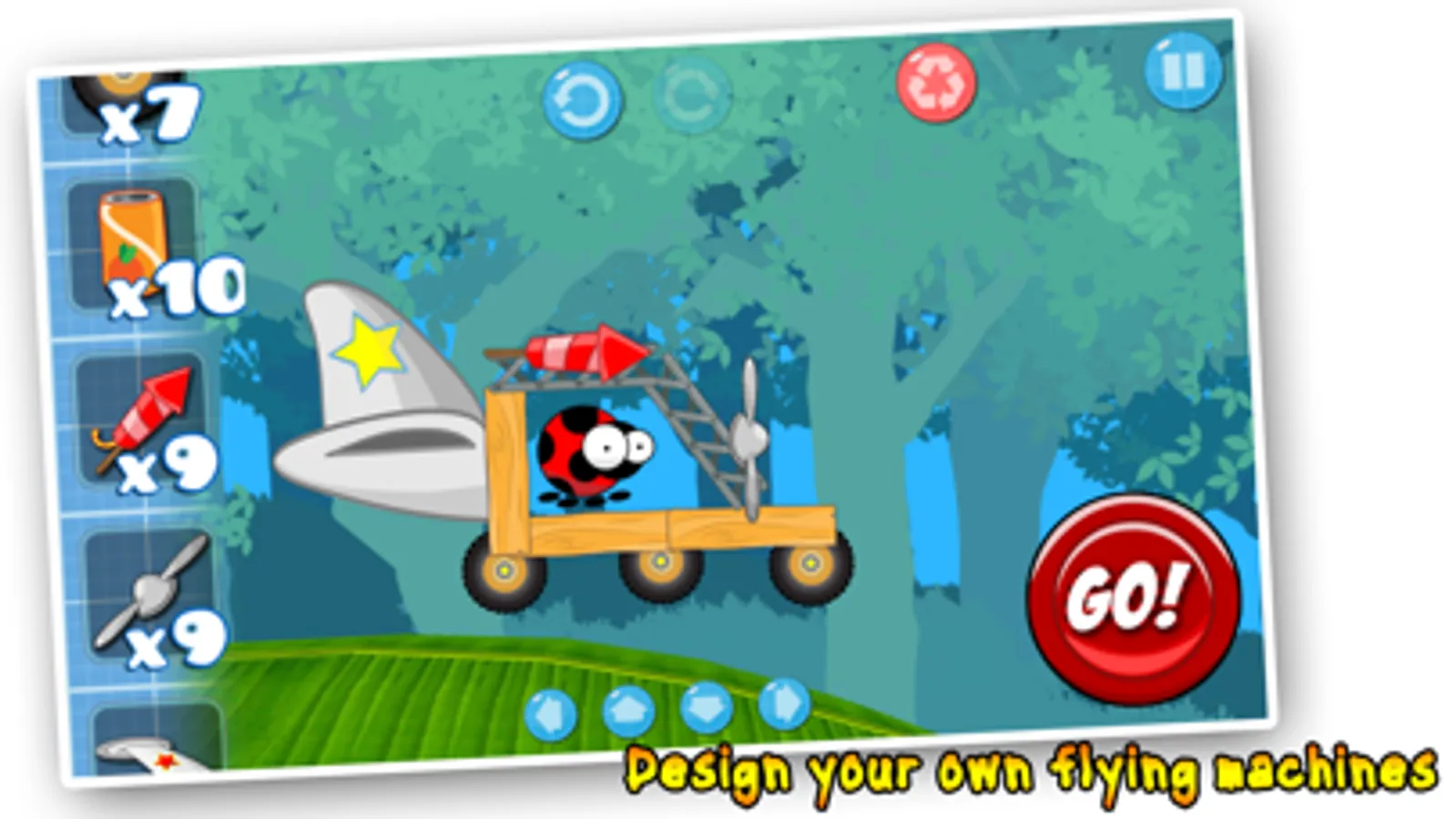 The hero of Flycraft is Herbie, the coolest ladybug in the forest. Too bored to fly with his own wings, Herbie prefers to use his cunning mind to create an infinite number of flying machines to get him as far away as possible.