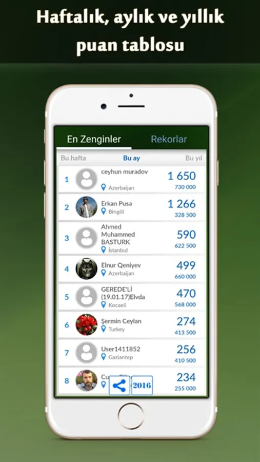 - Online sıralamalar (En İyiler, Rekorlar, İllere göre)