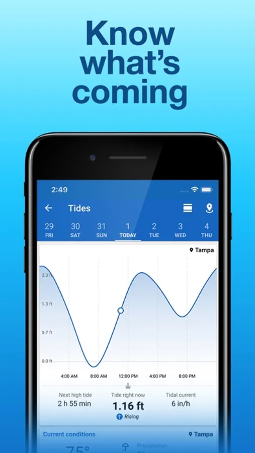 • Marine forecast with hourly wave reports (waves, swell, wind)