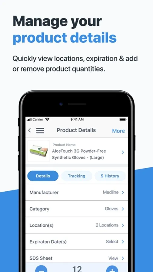 • Track quantity levels and set minimums so you know what you need, when you need it.