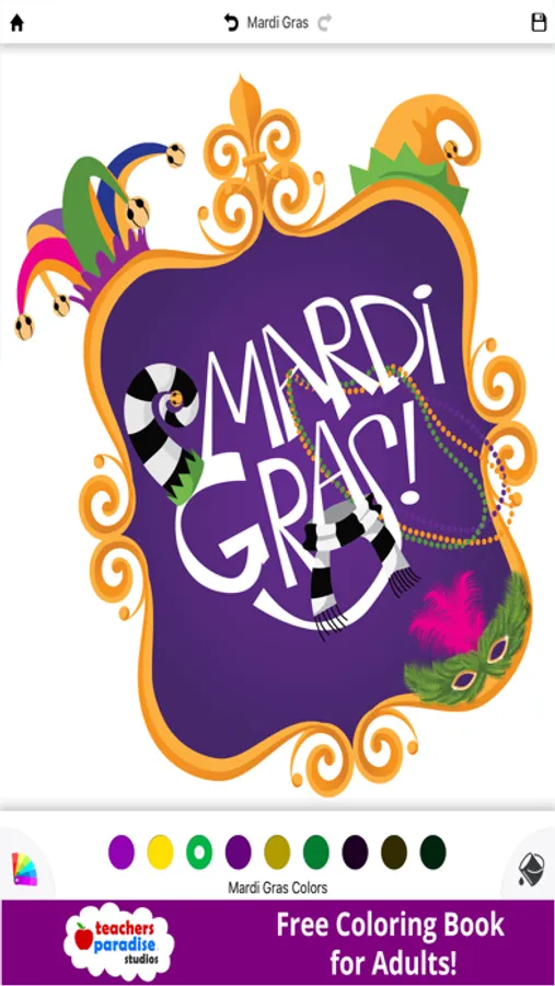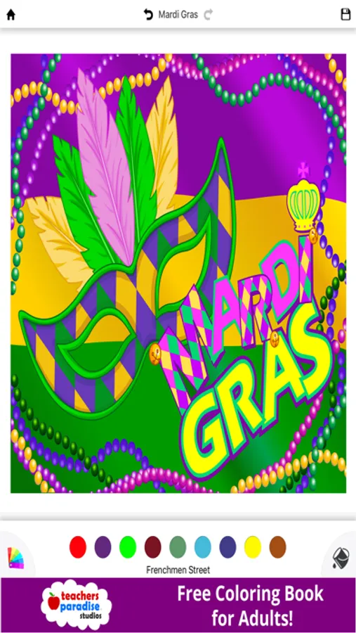 Coloring Book for Adults: Mardi Gras Fat Tuesday by TeachersParadise.com Studios