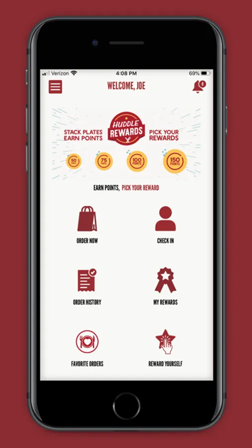 Huddle House is introducing Huddle Rewards, the easy way to stack plates, earn points and pick your rewards! Start earning today by visiting your local Huddle House or ordering online through the app. Download today and use the app to track your points, redeem your rewards and even place your online orders for pickup, curbside or delivery.