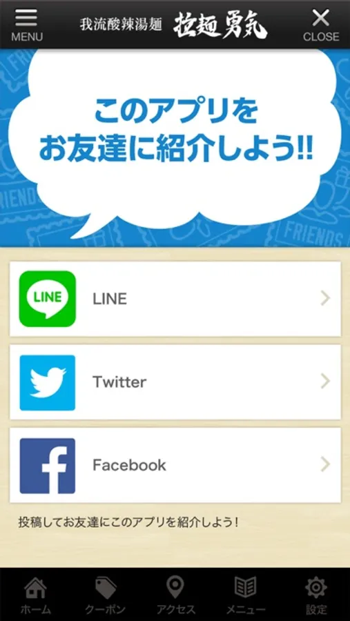 このアプリでは、拉麺勇気の色々な情報やアプリユーザー限定のお得なサービスが手に入ります!