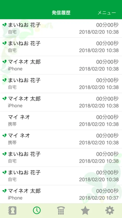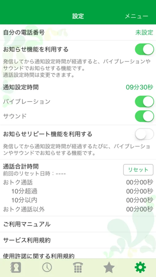 本アプリケーションから発信した通話の合計時間が表示されます。