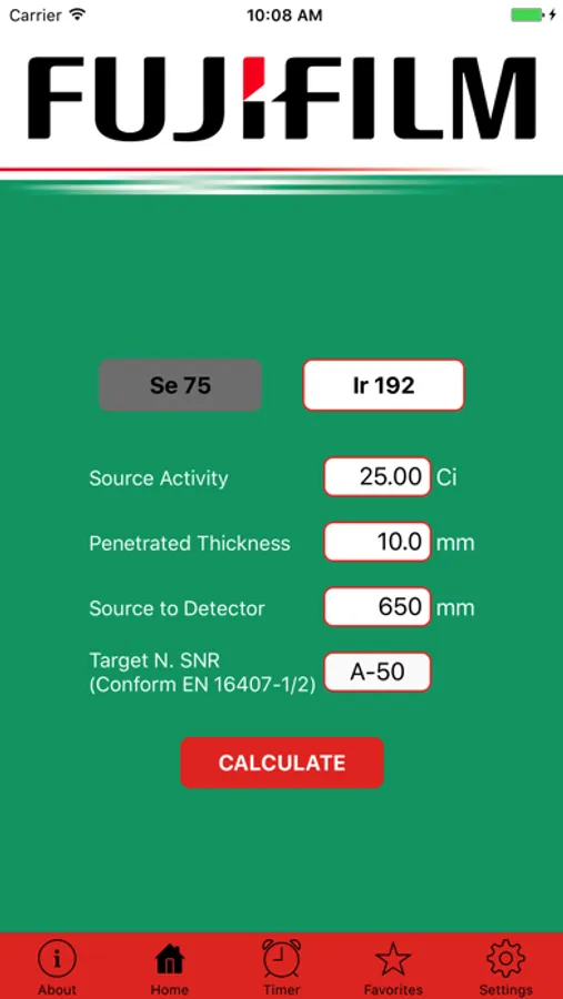 Exposure time calculator for use with Fujifilm DynamIx HR2 systems for radiographic inspection of corrosion and deposits in pipes by Gamma rays in accordance with EN 16407-1/2.