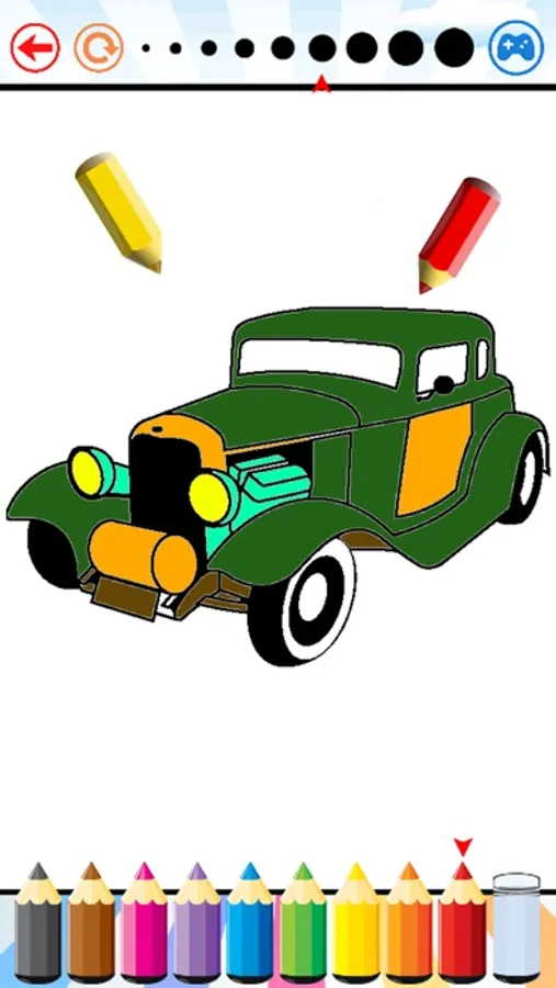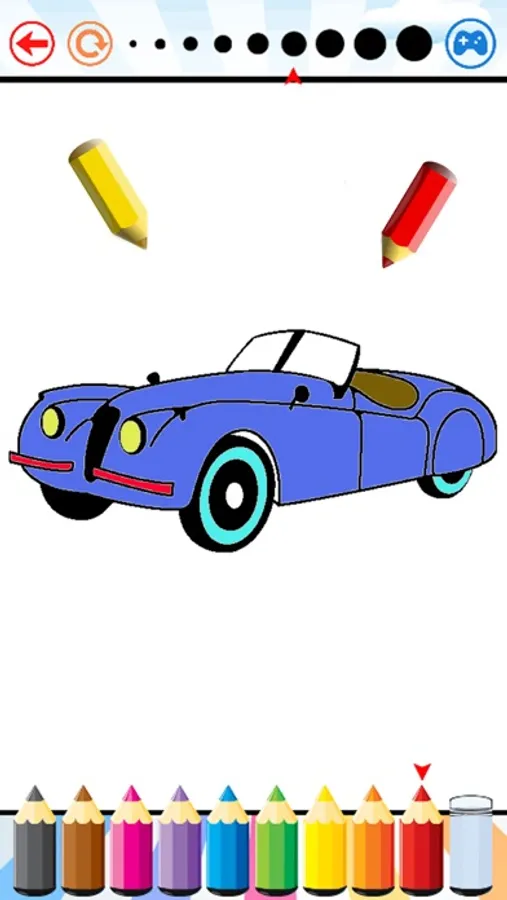 Games coloring car on the iPhone and iPad. Learn drawing and coloring for children. Use your finger to select a color and paint the image.