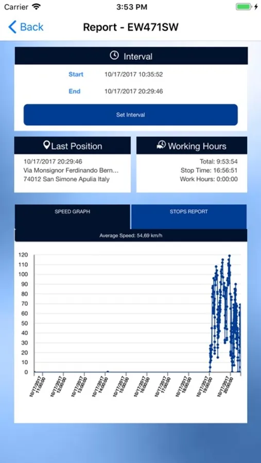 The App enables to track and localize the vehicle with the integrated device in real-time, verifying routes history; blocking ignition in case of theft; verifying maintenances and deadlines. Through the Report section, it is possible to analyze stops, routes and speed.
