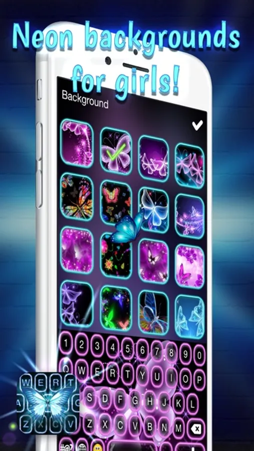 We offer you a carefully designed keyboard app for girls with beautiful neon butterfly themes and cool skins to enhance your typing experience like never before with any other app. Select your favorite themes and customize your device to express your sensations over your texts in the best possible way. Change your keyboard, fonts, themes, skins, languages, typing style, and more. Download our brand new Neon Butterfly Keyboard App and get excited with your new typing style!