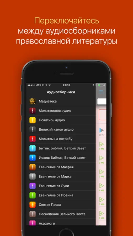 ・Легкое переключение между православными тематическими аудиосборниками через выпадающее меню;