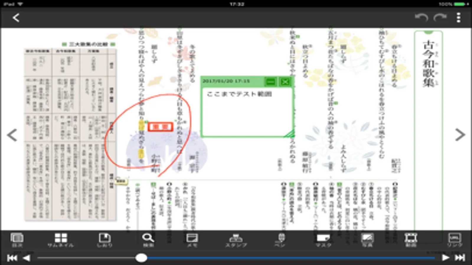 ページの一部を隠すマスクを貼ることができます。タップでめくれ,再度タップすると元に戻ります。