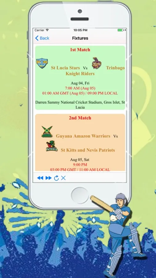 Live CPL T20 2017 TV Schedule & Live Cricket Match is an application of Caribbean Premier League 2017  cricket update, live cricket score, caribbean premier league fixture,caribbean premier league points table, caribbean premier league  team squads and caribbean premier league cricket news.