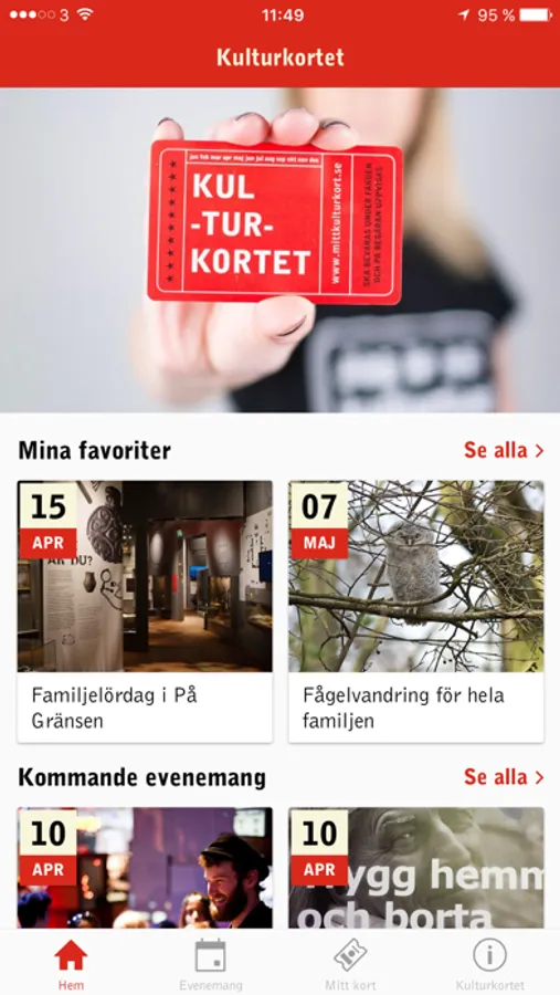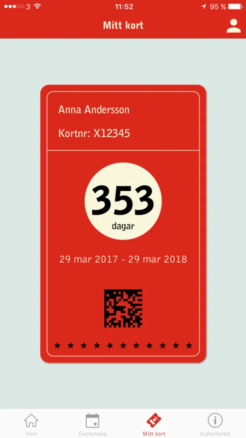 • Registrerad och bär med dig ditt Kulturkort i telefonen. Inget mer plastkort.