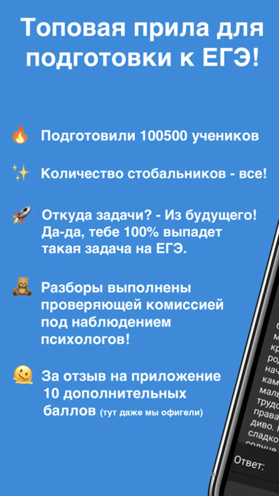 Готово! С этой установкой ты уже заработал 10 баллов. Остальные 90 ты получишь готовясь к ЕГЭ с нашим приложением!