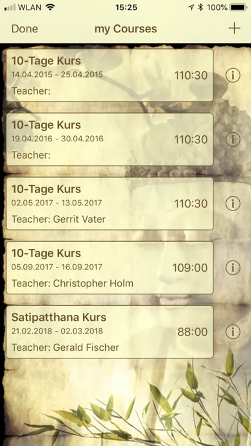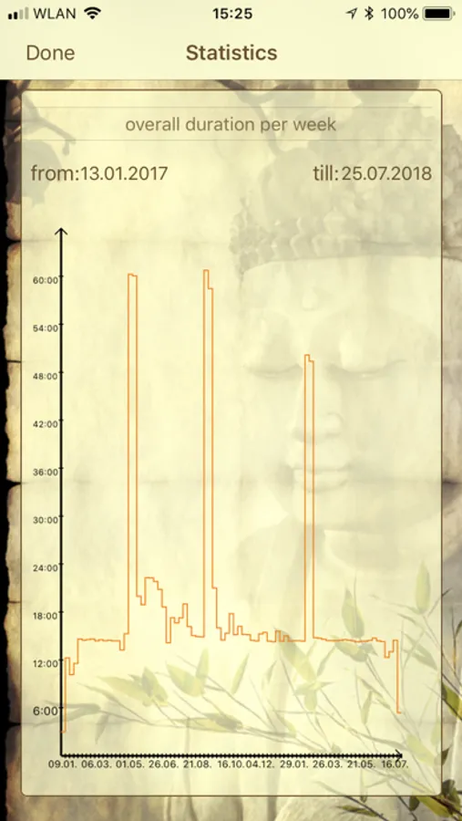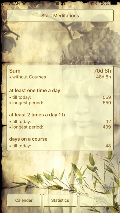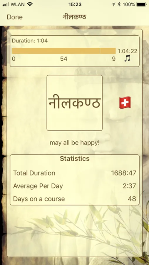 For this purpose you configure your very own timers and set the part of Anapana, Vipassana and Metta. The Sound of a singing bowl indicates transitions.