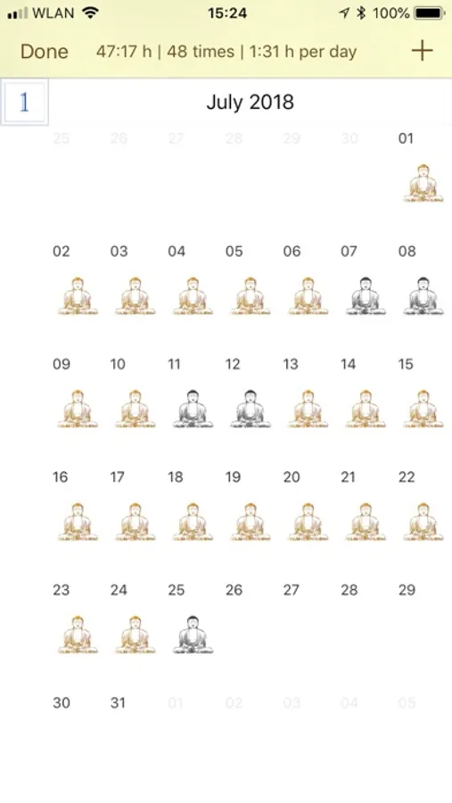 Monitor the regularity of praxis in the calendar. Earn silver and golden Buddhas.