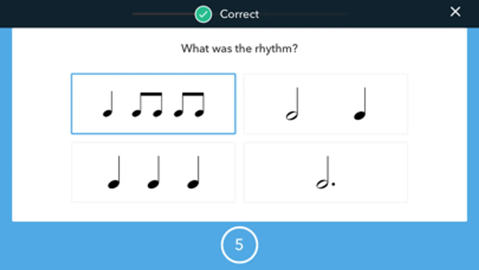 Rhythm Match - hear rhythms from the piece of Sight-Reading and identify the corresponding notation.