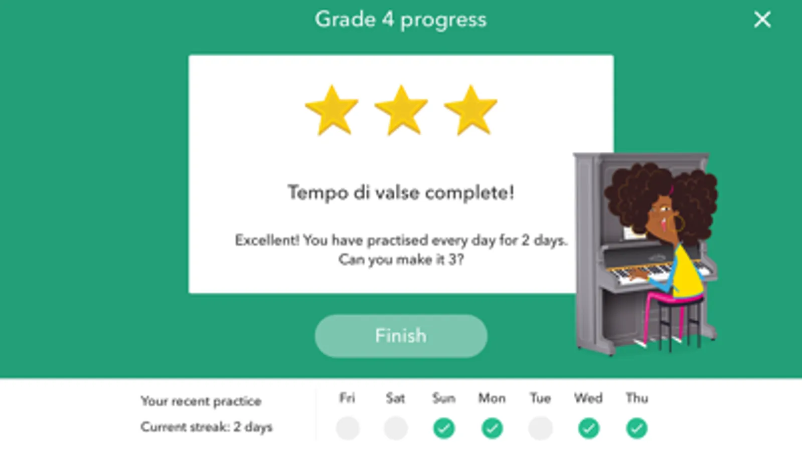 Complete the challenges to unlock the pieces and start a practice streak.