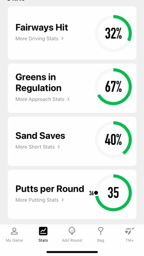 MyTaylorMadeOnCourse also tracks traditional stats such has fairways hit, greens in regulation and putts per round.