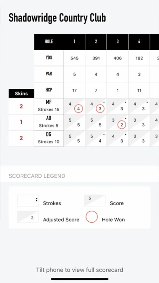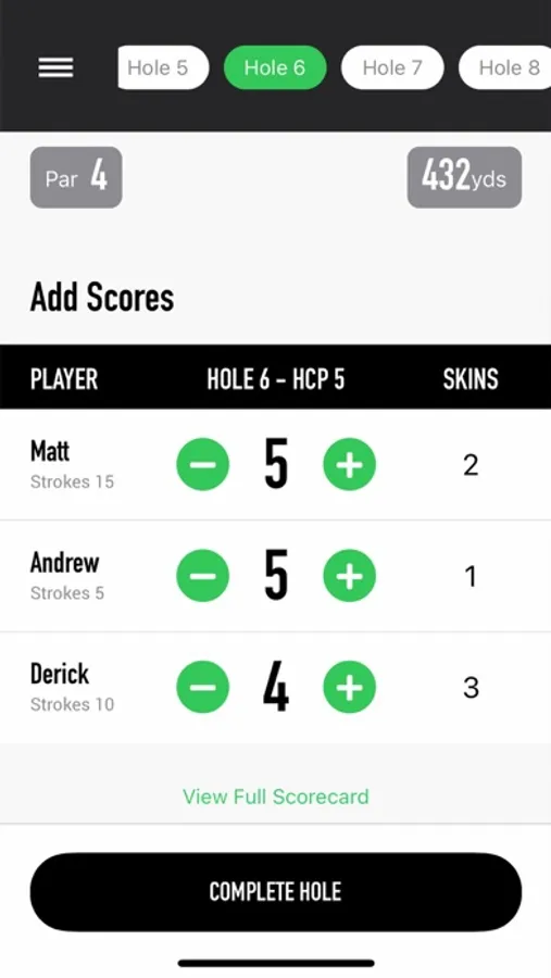 The new multi-player mode allows you to keep up to four player's scores, allocate strokes and choose a game mode such as match play or skins.