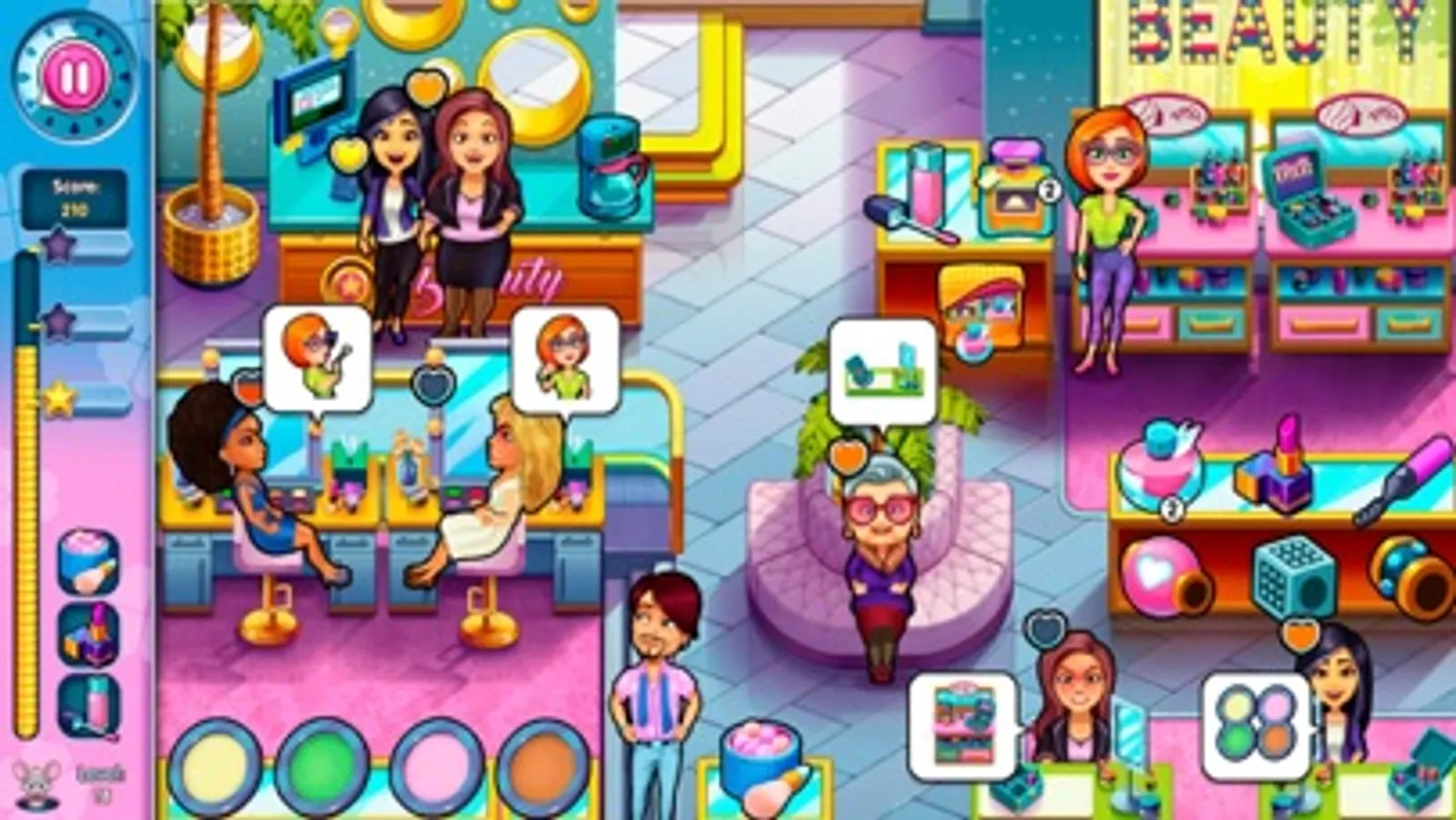 Sally’s Salon – Kiss & Make-Up is a thrilling tale of passion, love, danger, intrigue, bizarre absurdity and of course: beauty salons. It will keep you laughing from the moment you begin until you reach the end of this roller coaster ride. In short, a time-management story game like no other!