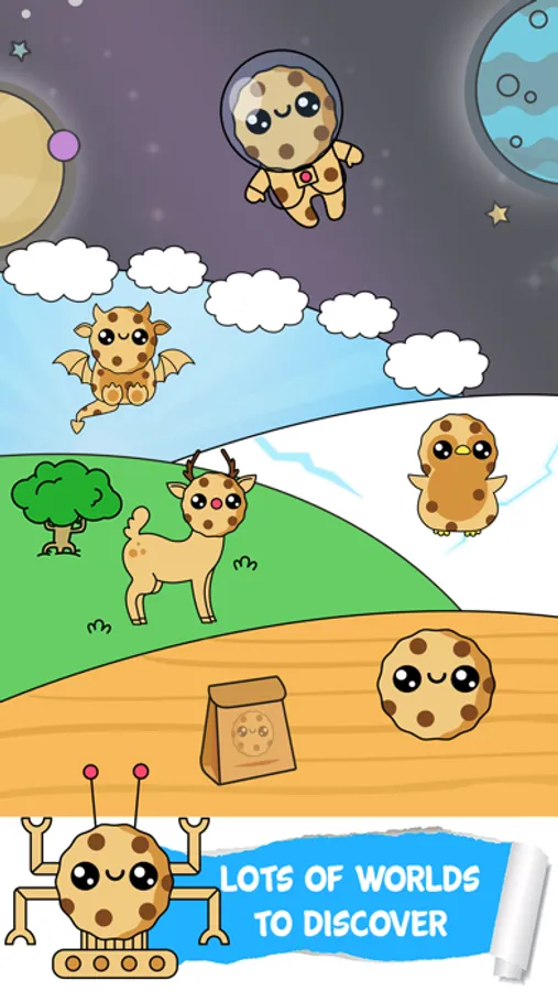 Find out what happens to an cookie food evolution when the evolution started, combine two cookie to evolve and discover the most curious and funny forms of your favorite food.