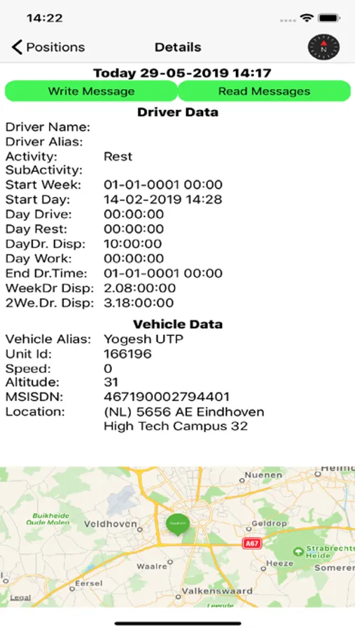 - Last 20 messages to and from truck.