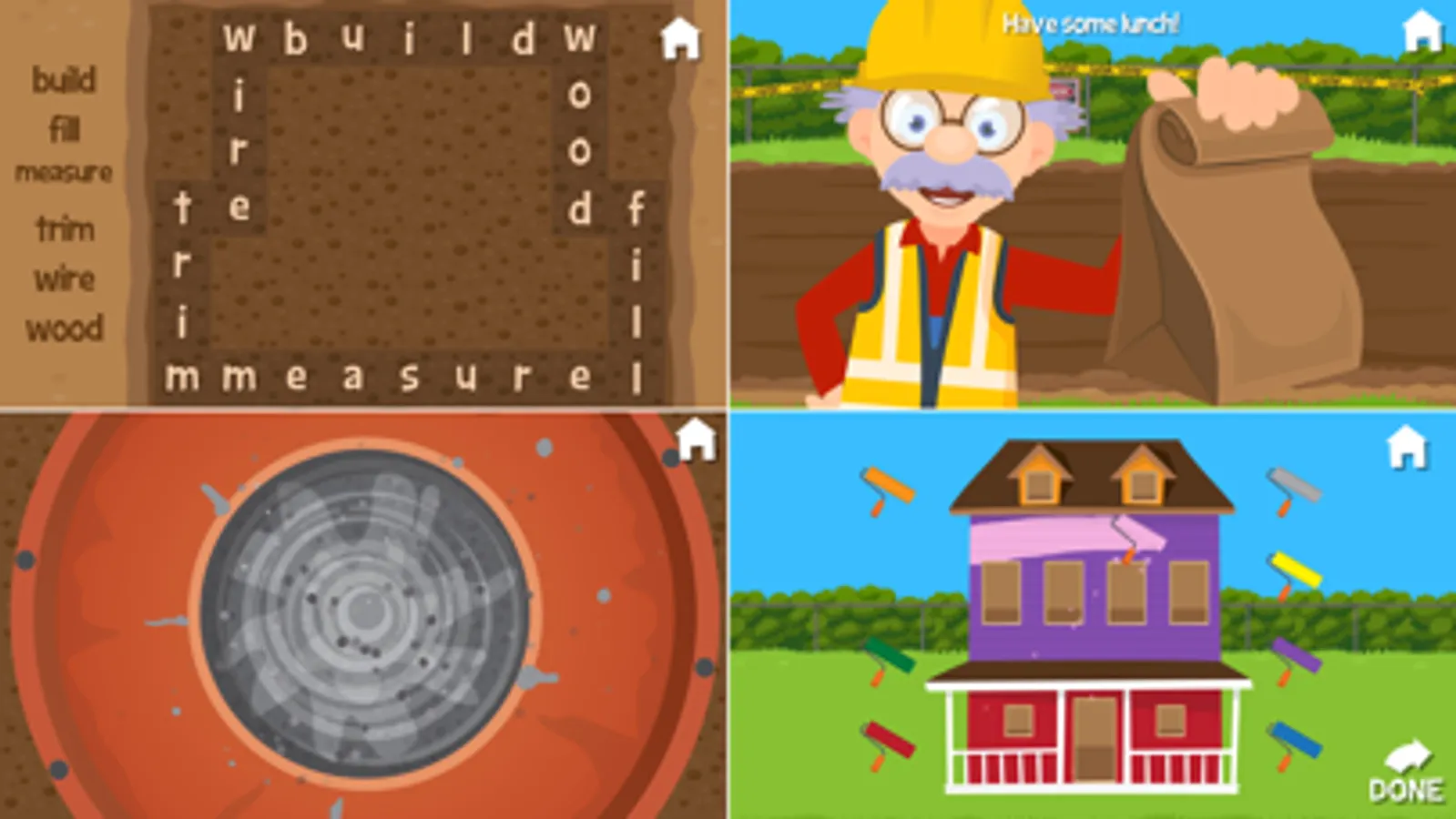 Kids love Build With Grandpa because they get to do everything from *dirt* to *decorate* in this original app!