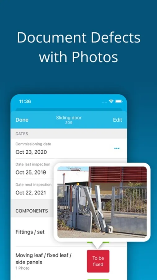 Inspection of swing door, turnstile, revolving gate, revolving door, tilting door, roller shutter, sliding door, sectional door, etc. is now very easy. Create your own templates for checklists if you want to add or change the pre-installed checklists. At the end of an inspection, you create a uniform documentation according to common standards.