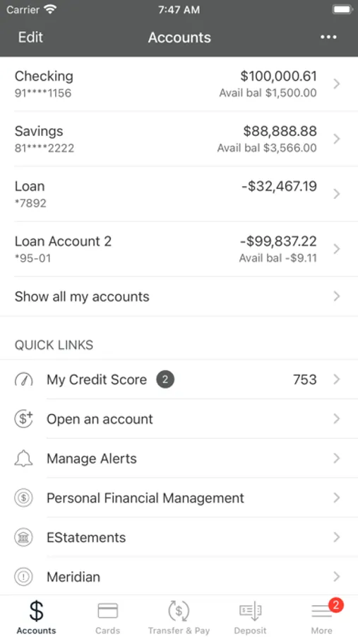 • Instant balance service allows you to view your account balance without having to log in (if you opt in)