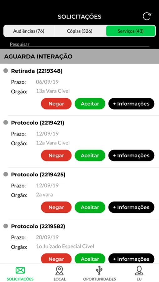 - Acessar o extrato de comissões e comprovantes de pagamento das demandas realizadas;