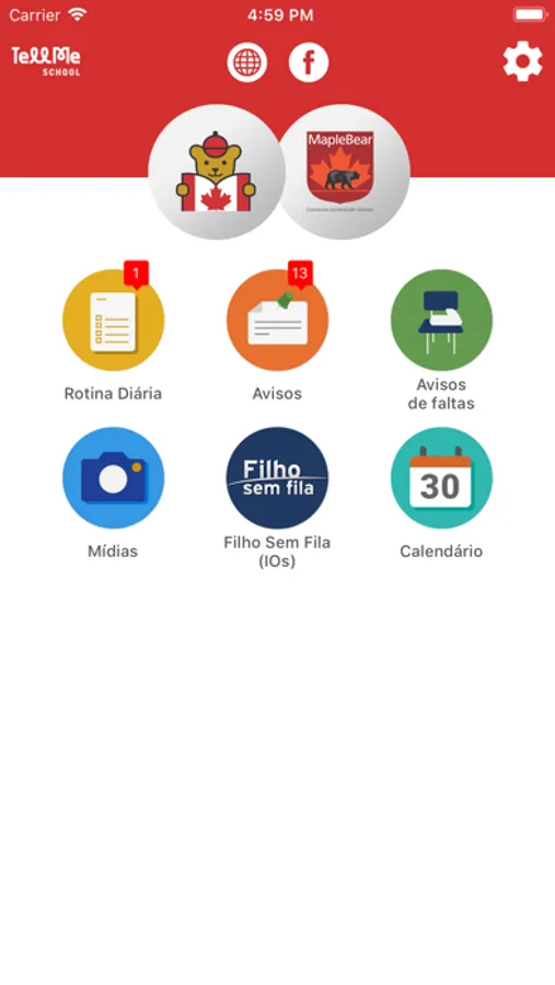 - Avisos enviados pela equipe pedagógica e pela diretoria;