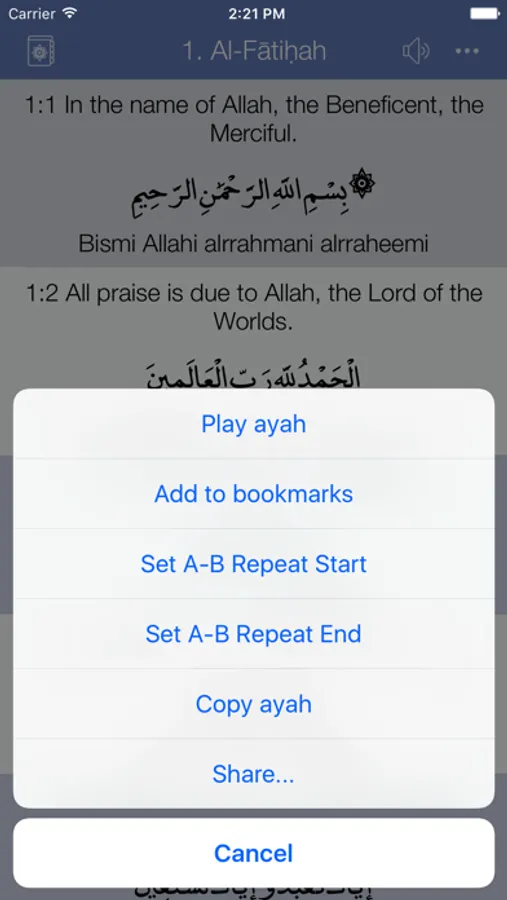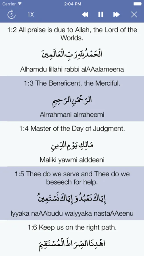 Memorize Quran aims to help you easily learn the Quran by heart. The app uses a pattern repeat to help kids and adults memorizing process easier. You can adjust the repetition pattern to match your specific needs. For longer surah you can select the Start and End Ayah for the repeat pattern.